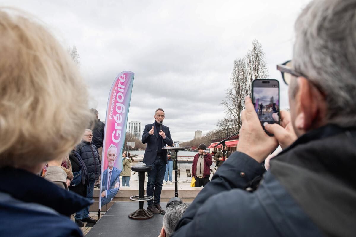 Sur la place de la Bataille de Stalingrad, dans le XIXe arrondissement de Paris, en ce dimanche pluvieux de la fin février, Emmanuel Grégoire a planté un décor minimal. Quelques bannières flanquées de son nom et de son visage, un guéridon et un micro sur pied à disposition de quiconque souhaite l’attraper. Peu connu du grand public, le candidat socialiste aux municipales dans la capitale s’est placé à portée de baffes. Et en a pris pas mal. «Pourquoi ce qui n’a pas fonctionné hier fonctionnerait demain ?» l’interpelle une mère de famille aux grandes lunettes rondes, mécontente du bilan de la ville en matière de sécurité.