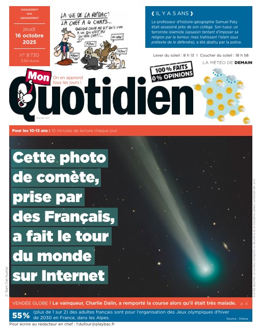 Mon Quotidien informe les jeunes lecteurs avec des actualités adaptées et des articles éducatifs, favorisant leur curiosité et leur compréhension du monde. Inclus dans l’abonnement Cafeyn Premium, ce journal est parfait pour initier les enfants à l’actualité. Abonnez-vous via Cafeyn pour éveiller leur esprit critique.