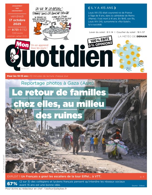 Mon Quotidien informe les jeunes lecteurs avec des actualités adaptées et des articles éducatifs, favorisant leur curiosité et leur compréhension du monde. Inclus dans l’abonnement Cafeyn Premium, ce journal est parfait pour initier les enfants à l’actualité. Abonnez-vous via Cafeyn pour éveiller leur esprit critique.