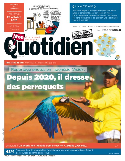 Mon Quotidien informe les jeunes lecteurs avec des actualités adaptées et des articles éducatifs, favorisant leur curiosité et leur compréhension du monde. Inclus dans l’abonnement Cafeyn Premium, ce journal est parfait pour initier les enfants à l’actualité. Abonnez-vous via Cafeyn pour éveiller leur esprit critique.