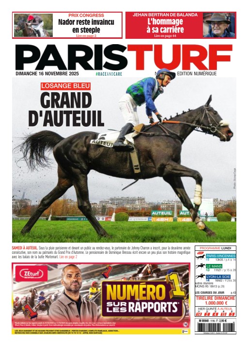 Paris Turf est le quotidien incontournable pour suivre l’actualité des courses hippiques en France et à l’international. Avec des analyses détaillées, des résultats en temps réel, et des pronostics d'experts, Paris Turf est un allié précieux pour tous les amateurs de courses et de paris. Inclus dans l’abonnement Cafeyn Premium, ce journal est parfait pour un abonnement qui vous offre un accès complet à l’univers des courses. Souscrivez à Paris Turf avec Cafeyn pour être informé quotidiennement des dernières nouvelles et des conseils pour les parieurs.