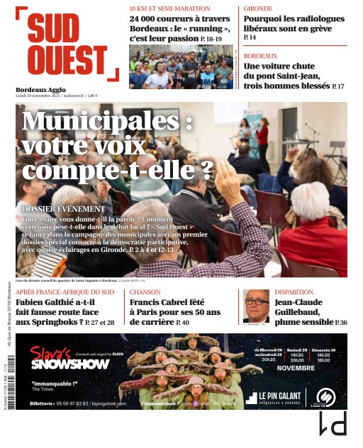 Sud Ouest Bordeaux Agglo met en lumière l’actualité économique, sociale et culturelle de l’agglomération bordelaise. Inclus dans l’abonnement Cafeyn Premium, ce journal est un incontournable pour suivre les évolutions et projets de Bordeaux. Abonnez-vous via Cafeyn pour ne rien manquer des informations locales.
