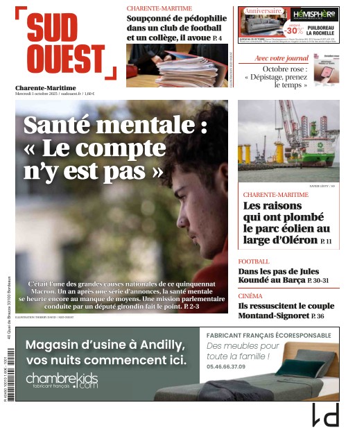 Sud Ouest Charente-Maritime couvre l'actualité des villes et villages de Charente-Maritime avec des reportages détaillés et des analyses locales. Inclus dans l’abonnement Cafeyn Premium, ce titre est une ressource précieuse pour les résidents et passionnés de la région. Abonnez-vous via Cafeyn pour un suivi quotidien des actualités.