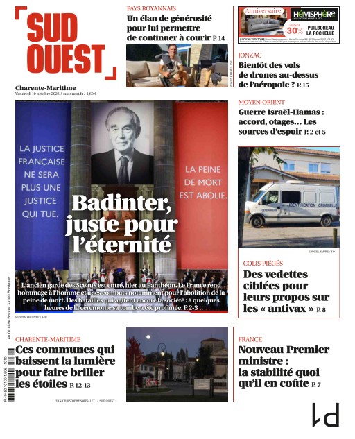 Sud Ouest Charente-Maritime couvre l'actualité des villes et villages de Charente-Maritime avec des reportages détaillés et des analyses locales. Inclus dans l’abonnement Cafeyn Premium, ce titre est une ressource précieuse pour les résidents et passionnés de la région. Abonnez-vous via Cafeyn pour un suivi quotidien des actualités.
