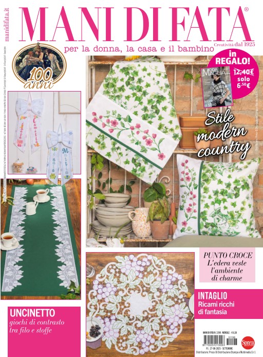 Dal 1925, “Mani di Fata” è la rivista leader di mercato nei lavori femminili. Ricca di progetti creativi esclusivi, schemi e spiegazioni per realizzare biancheria per la casa di qualità e rigorosamente Made in Italy, “Mani di Fata” e fatti a mano è un vero e proprio punto di riferimento nel settore dei magazine di creatività femminile